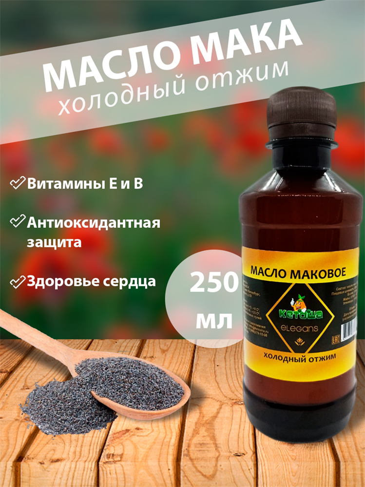 Масло маковое, холодный отжим, 250мл